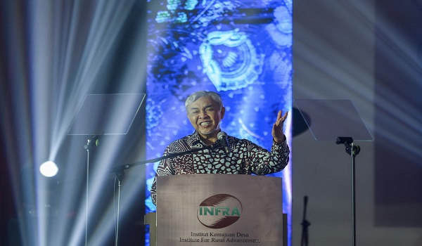 Timbalan Perdana Menteri merangkap Menteri Kemajuan Desa dan Wilayah,Datuk Seri Dr Ahmad Zahid Hamidi menyampaikan ucapan pada Sambutan Hari Pendidik KEMAS 2025 di Institut Kemajuan Desa (INFRA) hari ini. Foto BERNAMA