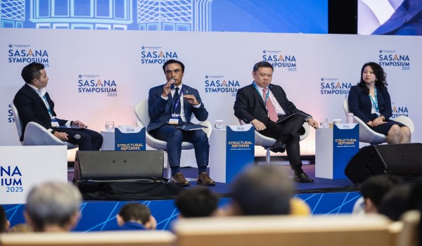 Adnan Zaylani (dua,kiri) pada sesi panel bagi membincangkan tajuk 'The Drivers of the Ringgit' pada Simposium Sasana 2025 di ibu negara,hari ini./BERNAMA