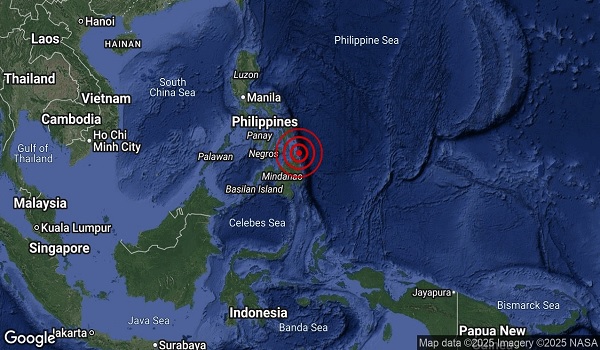 Jabatan Meteorologi Malaysia (METMalaysia) dalam kenyataan memaklumkan gempa itu berpusat di koordinat 9.8 darjah utara dan 126.2 darjah timur,kira-kira 76 kilometer (km) timur dari Surigao City,Filipina.
