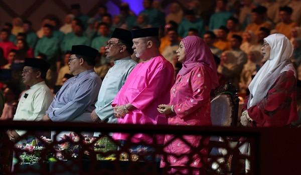 Ketibaan Seri Paduka berdua yang anggun mengenakan busana berwarna merah jambu,diiringi Perdana Menteri,Datuk Seri Anwar Ibrahim dan isteri,Datuk Dr. Wan Azizah Wan Ismail.