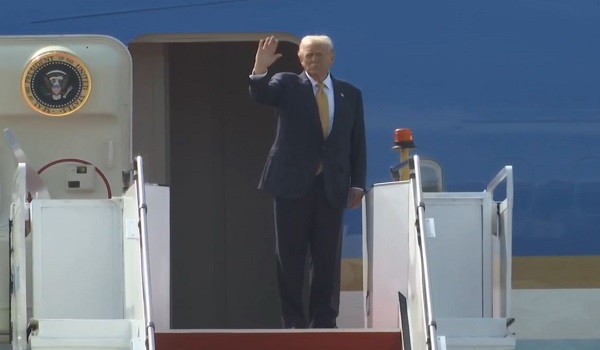 Terdahulu,kenderaan rasmi yang membawa Presiden Trump dilihat meninggalkan perkarangan hotel di ibu negara pada pukul 9.10 pagi.