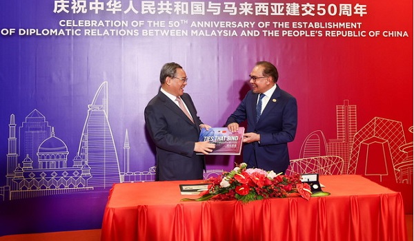 Sementara itu,Datuk Seri Anwar dan Li bertukar-tukar buku mewah bagi memperingati ulang tahun hubungan diplomatik ke-50 antara Malaysia dan China.