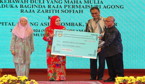 GOMBAK,23 Julai- Raja Permaisuri Agong Raja Zarith Sofiah berkenan menyumbangkan RM30,000 kepada Hospital Orang Asli Gombak (HOAG).