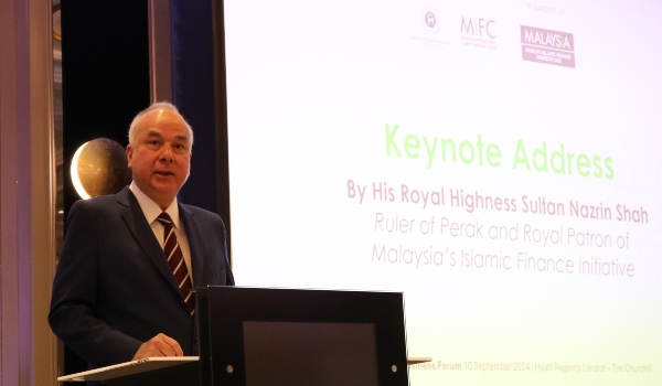Dalam ucapan Baginda di Forum Perniagaan Pusat Kewangan Islam Antarabangsa Malaysia (MIFC)-United Kingdom (UK) 2024,Sultan Nazrin menggariskan bahawa kewangan Islam berada dalam kedudukan strategik untuk mengatasi jurang pembiayaan yang menghalang kemajuan global dan berfungsi sebagai alat yang efektif untuk mengarahkan sumber ke tempat yang paling memerlukan.