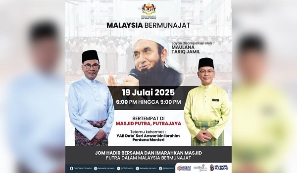 KUALA LUMPUR,18 Julai - Seluruh umat Islam dijemput hadir ke program Malaysia Bermunajat yang akan berlangsung esok,19 Julai di Masjid Putra,Putrajaya.