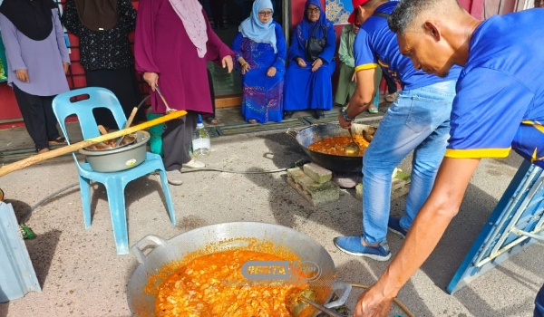 KANGAR,16 Jun- Lebih 100 penduduk Kawasan Rukun Tertangga (KRT) Taman Perumahan Behor Lateh melakukan gotong-royong dengan menyediakan tiga kawah besar Rendang Ayam untuk hidangan sempena sambutan Aidiladha.