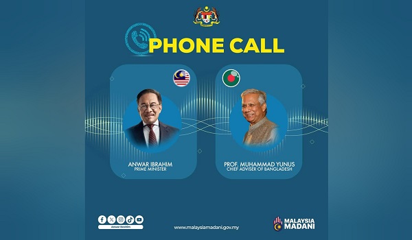 Ia disampaikan Perdana Menteri,Datuk Seri Anwar Ibrahim menerusi panggilan telefon bersama Pemimpin yang juga Ketua Penasihat kepada kerajaan interim Bangladesh,Prof Muhammad Yunus,malam tadi.