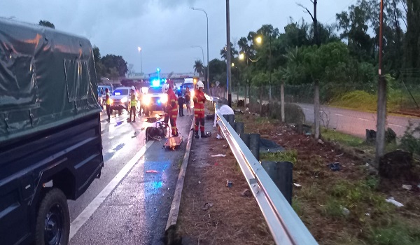 Ketika kejadian,mangsa 31 tahun yang sedang membaiki kereta di bahagian enjin hadapan telah terpelanting dan tertusuk besi pembahagi jalan akibat daripada rempuhan itu.