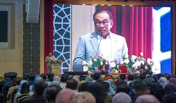 Perdana Menteri,Datuk Seri Anwar Ibrahim ketika berucap pada Perhimpunan Warga Kementerian Kewangan,di Putrajaya / Foto RTM