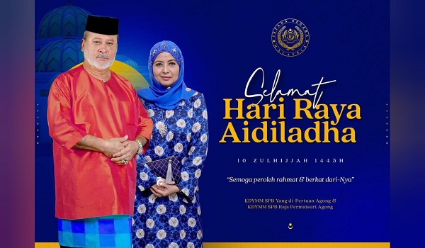 KUALA LUMPUR,16 Jun-Yang di-Pertuan Agong,Sultan Ibrahim dan Raja Permaisuri Agong,Raja Zarith Sofiah menzahirkan ucapan selamat menyambut Aidiladha kepada seluruh umat Islam di negara ini.