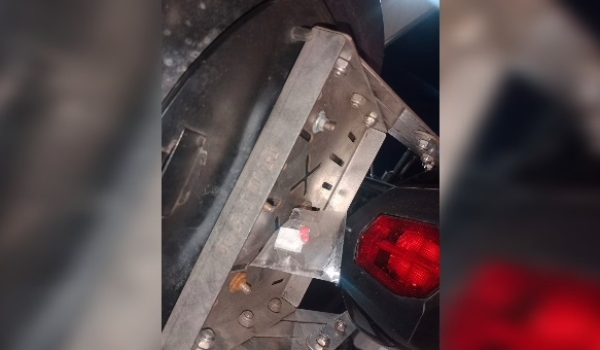 Bungkusan kecil dipercayai dadah,dilekatkan pada motosikal seorang lelaki dalam perjalanan memasuki Singapura