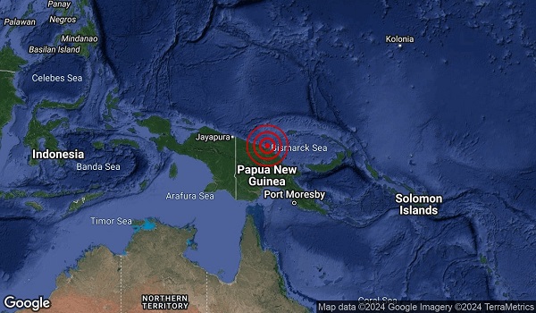 Jabatan Meterologi (MetMalaysia) memaklumkan gempa tersebut berlaku pada jarak 80 kilometer (km) timur dari dari Wiwak,Papua New Guinea.