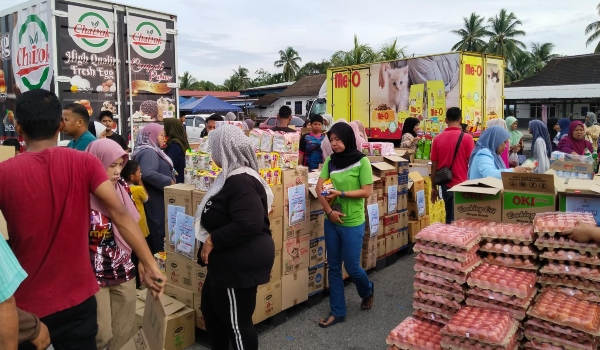 Penduduk sekitar Kuala Terengganu membeli barangan keperluan asas pada program Jualan Rahmah Madani
