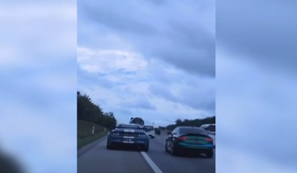 "Video berdurasi 36 saat itu memaparkan dua kereta model yang sama memotong kenderaan lain dengan menggunakan lorong kecemasan,sambil mengekori rapat antara satu sama lain.