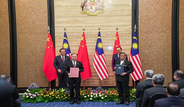 Dokumen protokol berkenaan diserah terima antara kedua-dua menteri dan Duta Besar Republik Rakyat China ke Malaysia semasa Majlis Pertukaran Memorandum Persefahaman Persetujuan Antara Perdana Menteri Malaysia dan Premier Republik Rakyat China yang diadakan di Putra Perdana,Putrajaya hari ini.