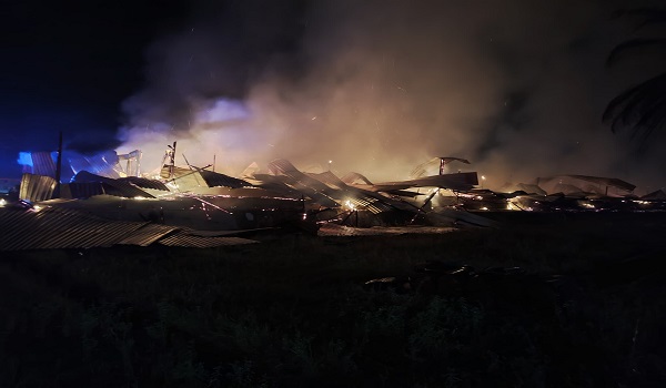Kebakaran membabitkanempat buah gerai jualan di Pasar Tani,Jalan Demak Laut,Sejingkat / FOTO JBPM SARAWAK