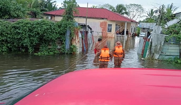 MUKAH,19 Januari- Empat penduduk di Skim Penempatan Semula Kuala Lama Mukah meminta bantuan pihak bomba untuk memindahkan mereka ke rumah anak masing-masing yang terletak di kawasan perumahan berdekatan,selepas dilanda banjir kilat berikutan hujan lebat awal pagi ini.