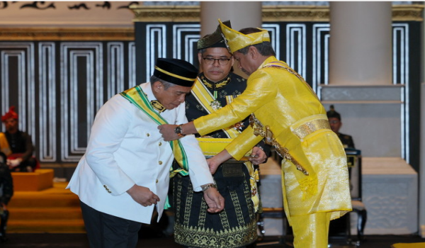Ketua Setiausaha Negara,Tan Sri Shamsul Azri Abu Bakar (kiri) dianugerahkan Darjah Kebesaran Seri Setia Sultan Mizan Zainal Abidin Terengganu (SSMZ) Yang Amat Terpilih,yang membawa gelaran Datuk Seri / Foto BERNAMA