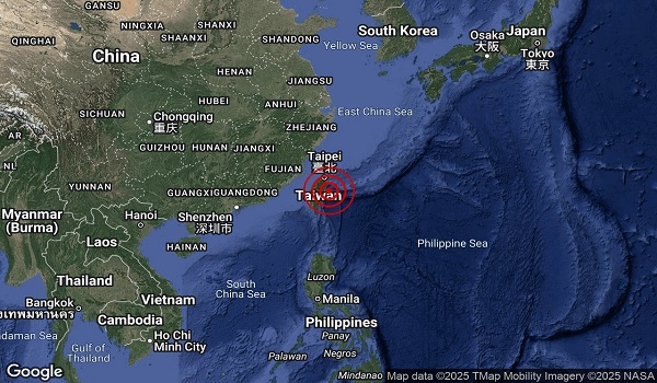 Jabatan Meteorologi Malaysia (METMalaysia) menerusi kenyataan berkata,gempa dengan kedalaman 11 kilometer (km) itu berlaku pada jarak 110 km timur dari Taichung,Taiwan.