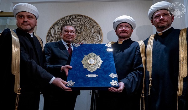 "Sebagai balasan penuh makna,Sheikh Ravil turut menghadiahkan saya senaskhah al-Quran mushaf Uthmani dari Uzbekistan yang punyai sejarah panjang dan menjadi simbol kelangsungan ilmu serta warisan keindahan Islam yang merentasi benua dan generasi",kata Datuk Seri Anwar menerusi hantaran di Facebook.