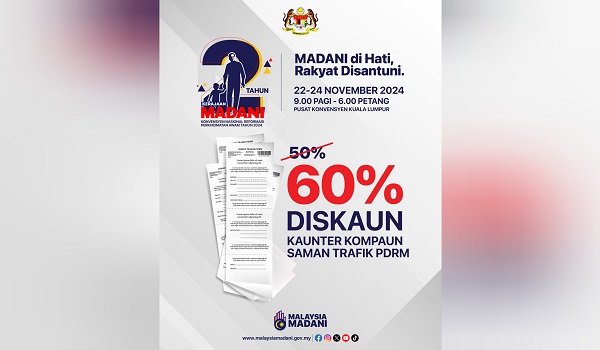 Diskaun 60 peratus saman trafik PDRM sempena Program Dua Tahun Kerajaan MADANI