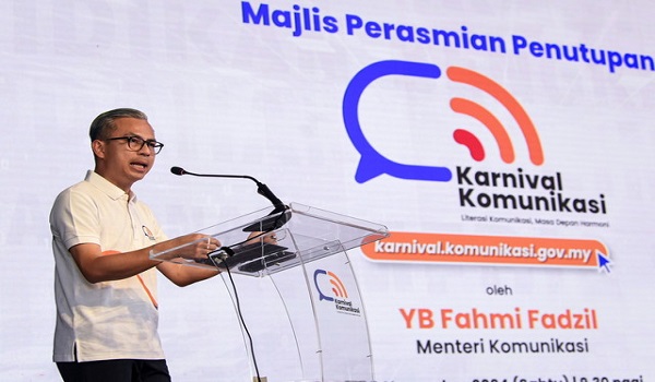 Menteri Komunikasi,Fahmi Fadzil menyampaikan ucapan pada Majlis Perasmian Penutupan Karnival Komunikasi 2024,hari ini/ BERNAMA