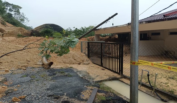 MACHANG,30 November- Hujan berterusan sejak beberapa hari lalu telah menyebabkan kejadian tanah runtuh di kawasan Taman Perumahan Desa Emas,Machang,Kelantan.