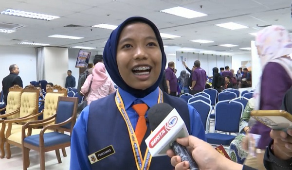 Fatin Nur Irdina Maisarah Raman dariSekolah Kebangsaan Merlimau 2 memenangi kategori pembentang terbaik menerusi penghasilan produk sabun eczema
