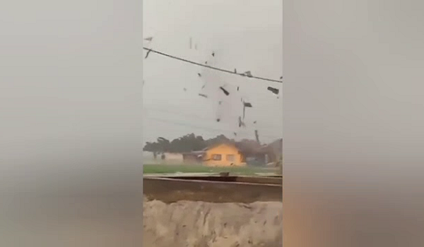 Terdahulu,video tular yang dirakam orang awam menunjukkan angin puting beliung menerbangkan bumbung rumah penduduk hingga lebih 50 meter ke udara.