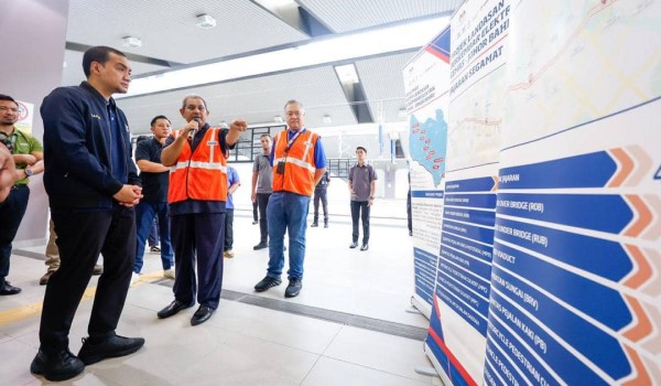 Menteri Besar Johor,Datuk Onn Hafiz Ghazi diberi taklimat berhubung Projek ETS Gemas-JB ketika lawatannya di Stesen KTM Layang-Layang,baru-baru ini/Foto FB MB