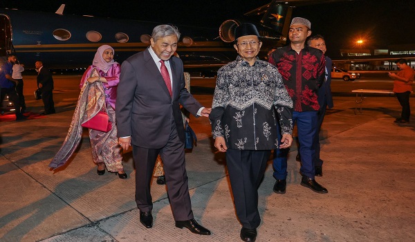 Ahmad Zahid,yang juga Menteri Kemajuan Desa dan Wilayah,disambut oleh Menteri Agama Indonesia Nasaruddin Omar,Duta Besar Malaysia ke Indonesia Datuk Syed Mohamad Hasrin Tengku Hussin serta Perwakilan Tetap Malaysia ke ASEAN Datin Sarah Al Bakri Devadason.