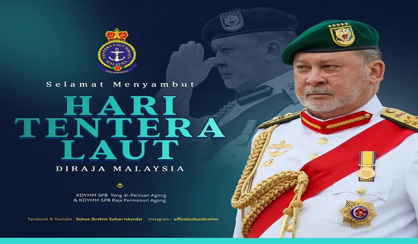 KUALA LUMPUR,27 April- Yang di-Pertuan Agong,Sultan Ibrahim,menzahirkan ucapan selamat menyambut Hari Tentera Laut Diraja Malaysia (TLDM) ke-91 kepada seluruh warga dan veteran pasukan itu.