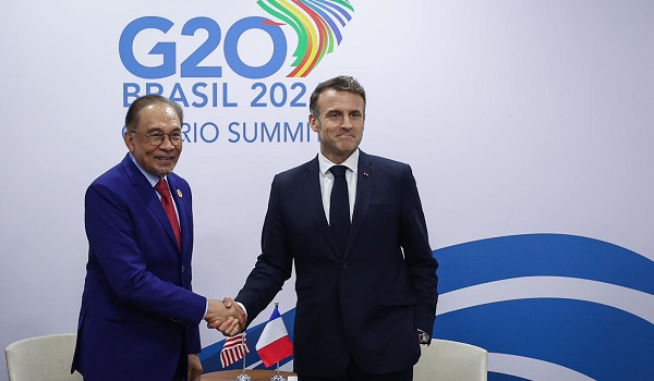 RIO DE JANEIRO,19 November- Perdana Menteri Datuk Seri Anwar Ibrahim mengadakan pertemuan dengan Presiden Perancis Emmanuel Macron pada luar Sidang Kemuncak Kumpulan 20 (G20) di sini.