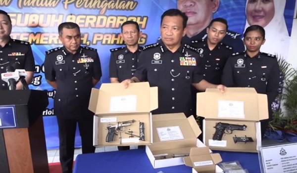 Polis turut merampas dua pucuk pistol yang mana satu daripadanya adalah pistol angin dan satu lagi pistol tulen jenis semi auto.