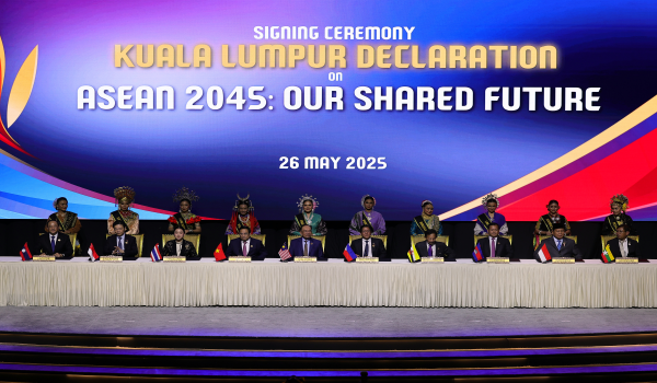 KUALA LUMPUR,27 Mei – Sidang Kemuncak ASEAN Ke-46 mencatat detik bersejarah apabila ASEAN secara rasmi melancarkan Deklarasi Kuala Lumpur mengenai ASEAN 2045: Masa Depan Bersama Kita,yang menjadi penanda aras baharu hala tuju pembangunan rantau ini bagi dua dekad akan datang.