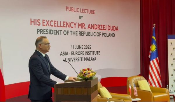 KUALA LUMPUR,11 Jun - Presiden Republik Poland,Andrzej Duda hadir ke Institut Asia-Eropah,Universiti Malaya bagi menyampaikan syarahan umum bertajuk ‘Poland’s Position in the EU : Challenges and Choices’.