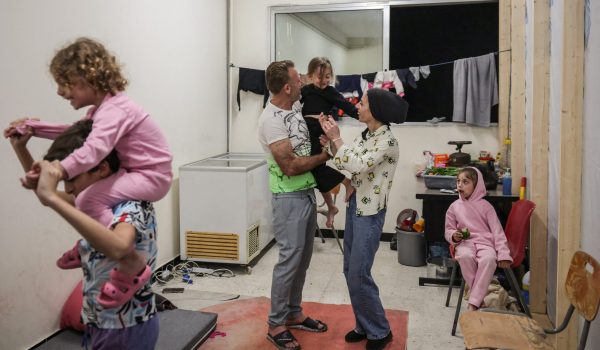 Mostafa Ibrahim Allayed bersama isterinya Farrah Ali Hijazi dan keluarga meraikan pengumuman gencatan senjata/Foto REUTERS