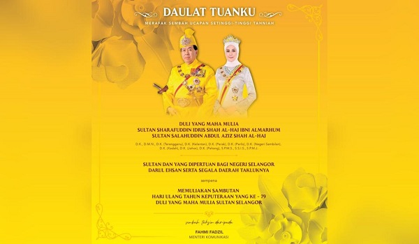 KUALA LUMPUR,11 Disember- Menteri Komunikasi Fahmi Fadzil merafak sembah dan ucapan tahniah sempena ulang tahun Hari Keputeraan ke-79 Sultan Selangor Sultan Sharafuddin Idris Shah hari ini.