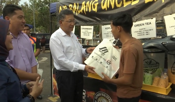 Khalid Mohamed (tiga kiri) pada Program My Save Food Negeri Melaka di Bazar Ramadan MITC semalam/RTM