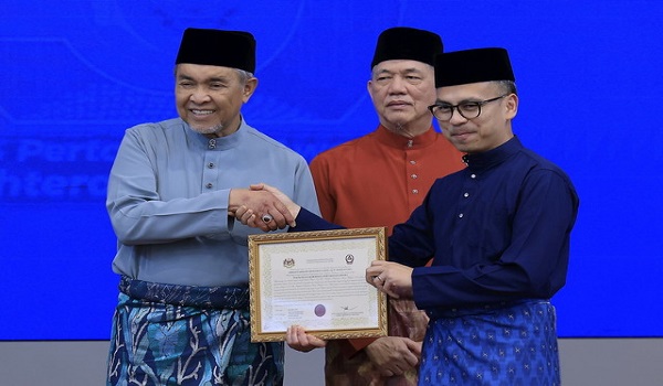 Turut menerima watikah,Menteri Perdagangan Dalam Negeri dan Kos Sara Hidup,Datuk Armizan Mohd Ali.