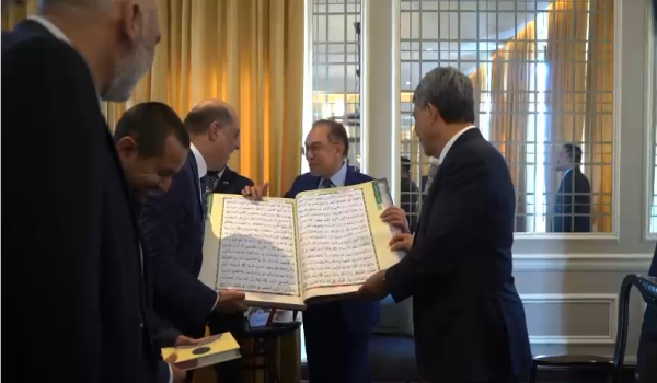 LIMA,15 November-Perdana Menteri Datuk Seri Anwar Ibrahim menyampaikan sumbangan 50 naskah Al-Quran cetakan khas dan terjemahan dalam bahasa Sepanyol kepada komuniti Islam di sini.