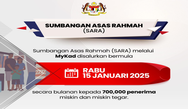 KUALA LUMPUR,14 Januari – Bermula esok,Sumbangan Asas Rahmah (SARA) akan disalurkan secara bulanan melalui MyKad kepada 700,000 penerima miskin dan miskin tegar di seluruh negara.