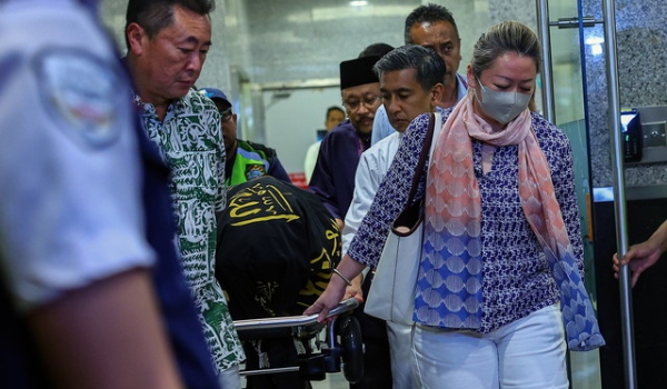 Jenazah Allahyarham bekas Perdana Menteri kelima Tun Abdullah Ahmad Badawi,85,dibawa keluar dari Institut Jantung Negara untuk di bawa ke rumah beliau di ibu negara malam tadi/Foto BERNAMA
