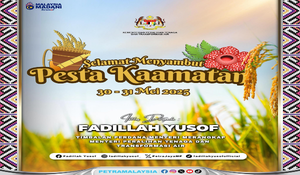 “Selamat Menyambut Pesta Kaamatan,Kotobian Tadau Tagazo Do Kaamatan,”kata beliau yang juga Menteri Peralihan Tenaga dan Transformasi Air.